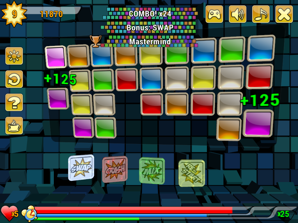 The core idea is simple: remove matching tiles from the bottom row, unlock tiles above them, and gradually clear the board. Despite its simplicity, Squards offers strategic depth thanks to its bonus system, multiple difficulty levels, and varied game modes.